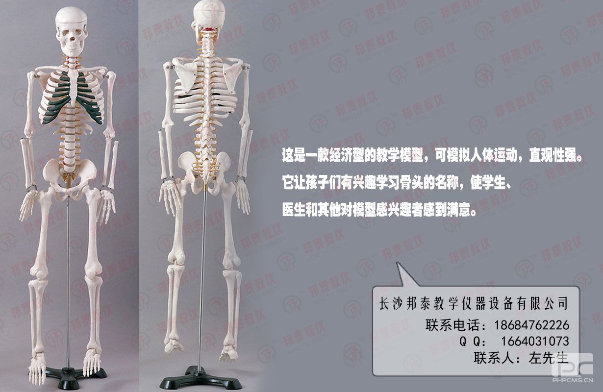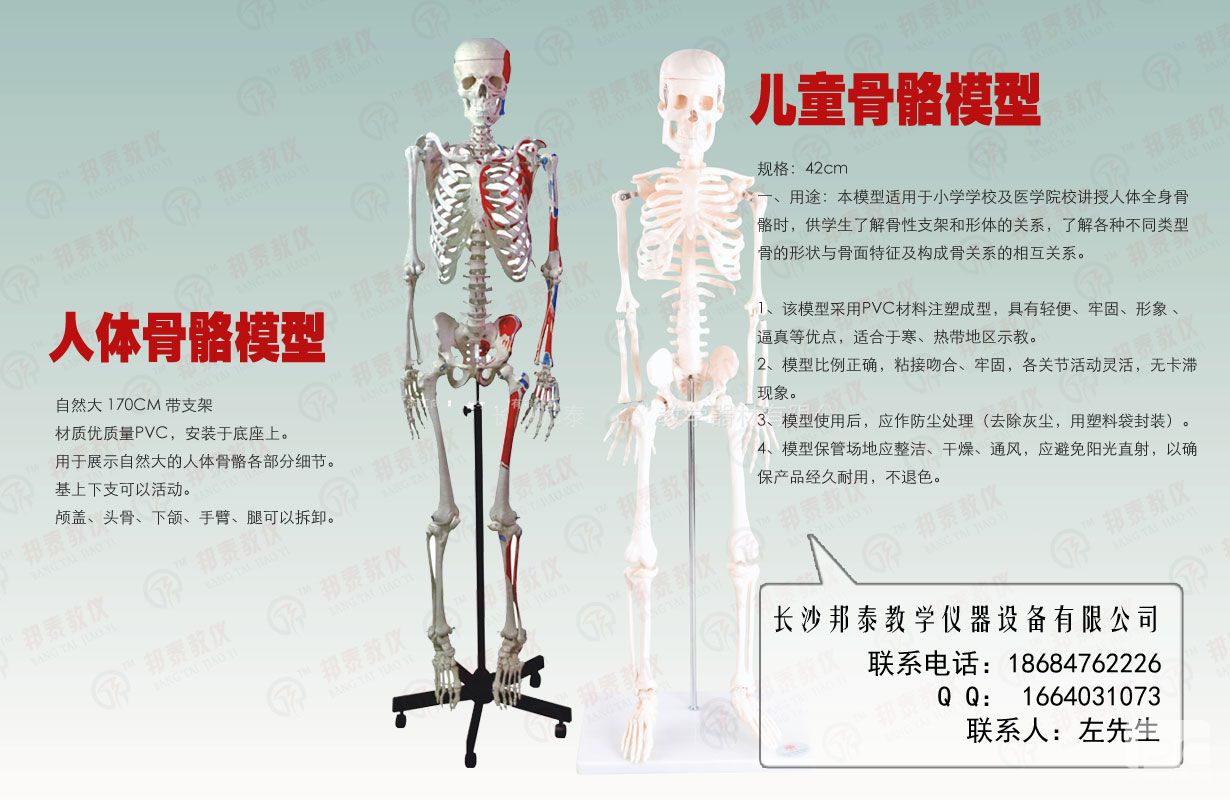 本模型適用于中小學校及醫(yī)學院講解人體全身骨骼時,使學生了解骨幾天支架和形體關系,了解各種不同體型骨的形狀與骨面特征及構成骨關節(jié)和相互關系。