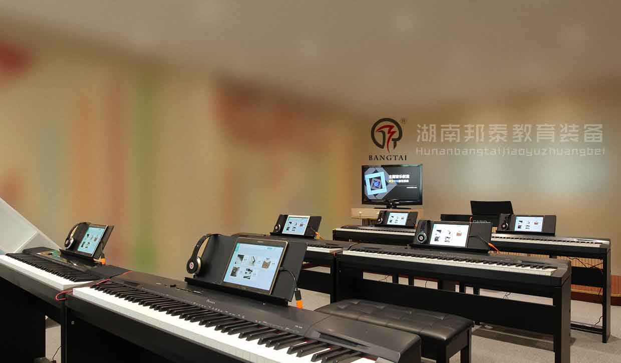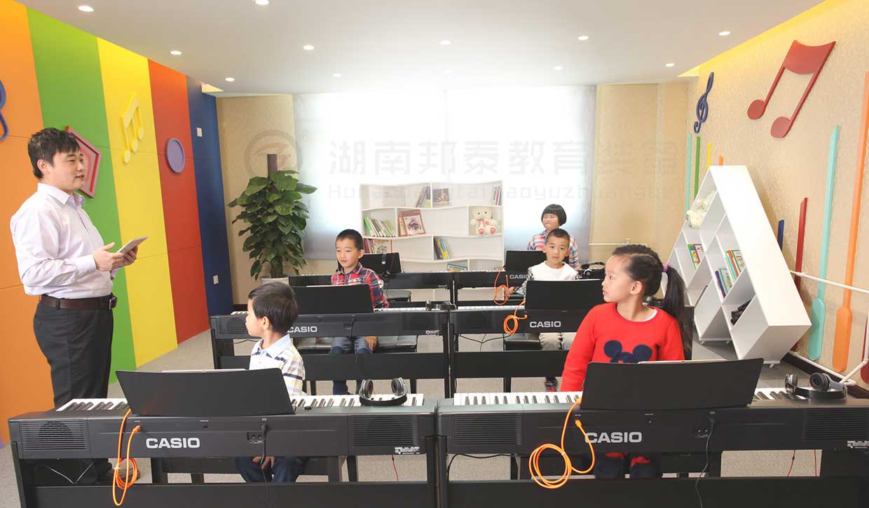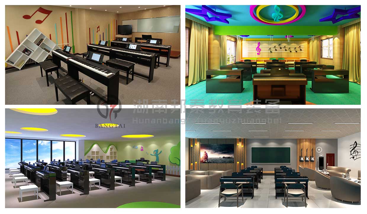湖南邦泰教育裝備有限公司的音樂教室首先要配備有一套音樂欣賞與表達設備,音響、調(diào)音臺、功放、話筒、五線譜電教板、等多媒體相關(guān)設備必不可少,與此同時,硬件的配置少不了軟件資源的支撐,所以要配備音樂歌曲資源和多媒體教學軟件(軟件視小、初、高不同階段,配置不同軟件)。