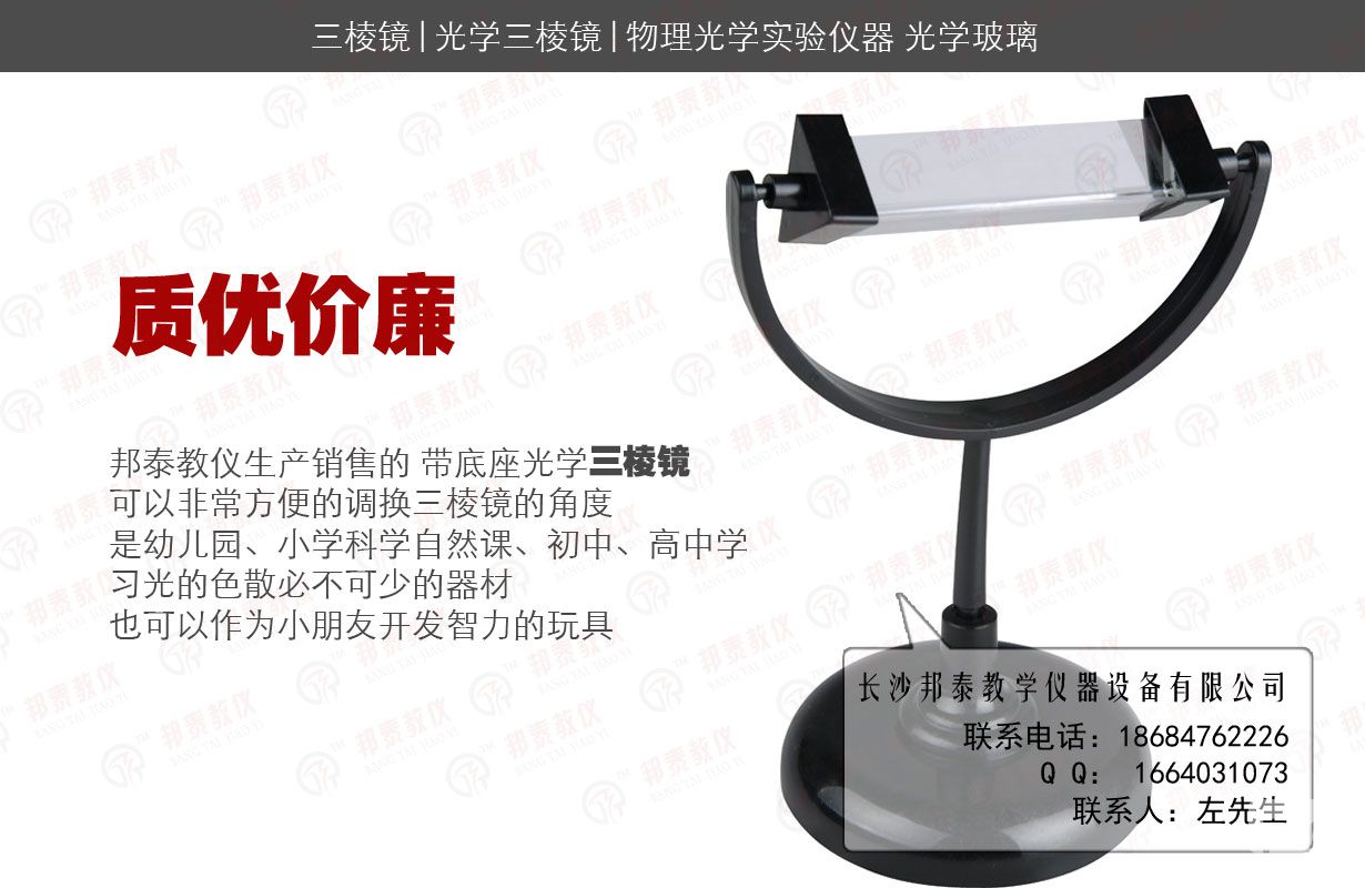 【優(yōu)點(diǎn)】:高度是可調(diào),角度可調(diào)、玻璃三棱鏡可以拆下來,非常方便做各種實(shí)驗(yàn)。