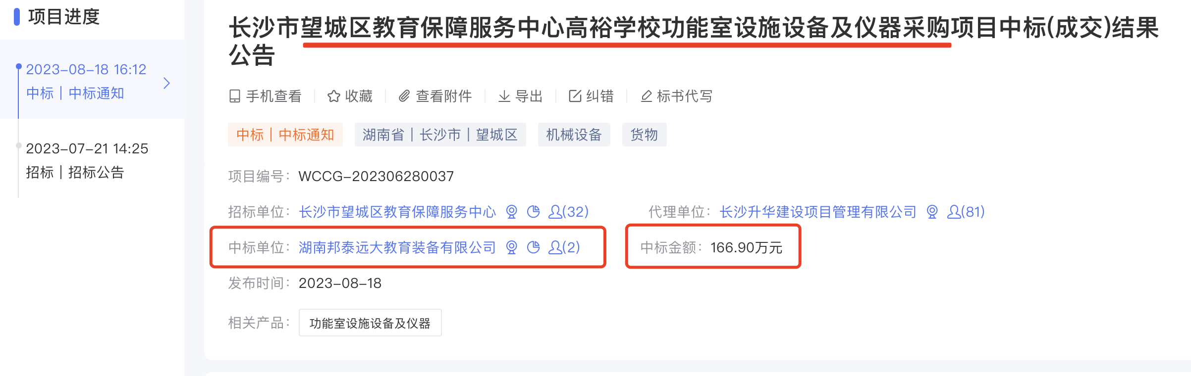 - 公司中標(biāo)望城區(qū)高裕學(xué)校功能室教學(xué)儀器及設(shè)施設(shè)備